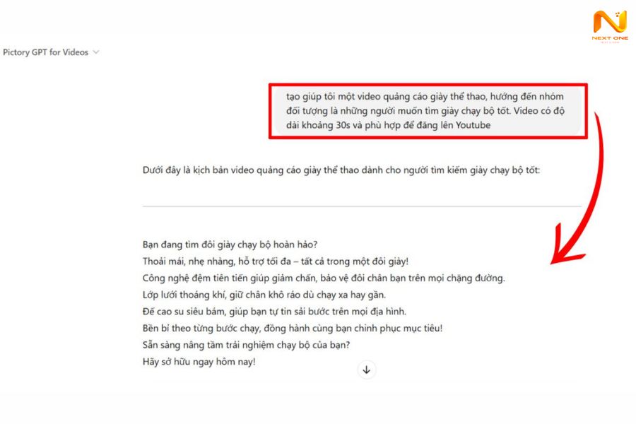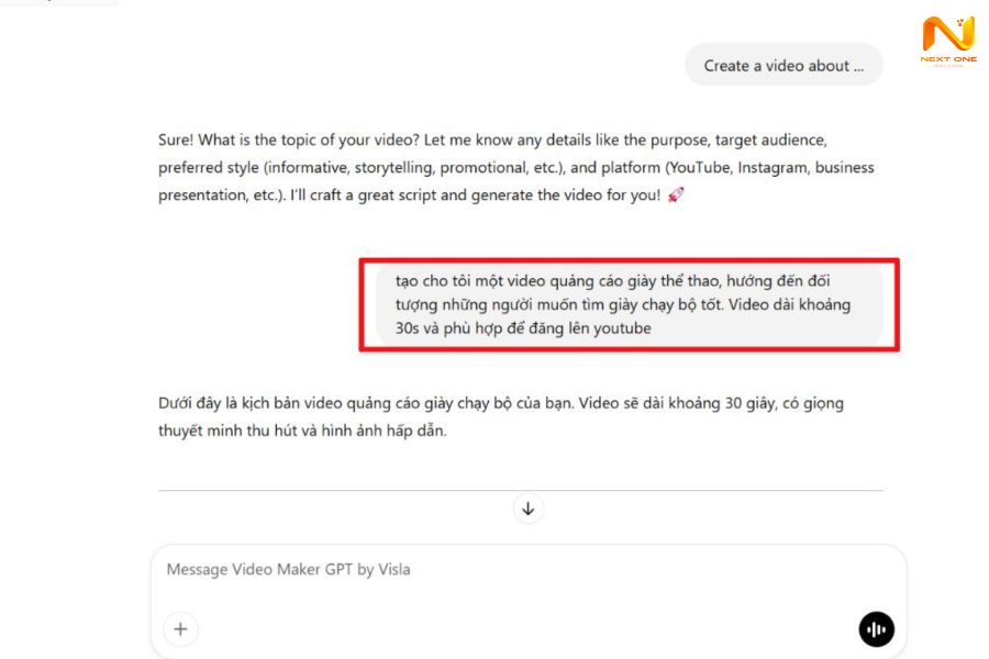 Bước 2: Nhập yêu cầu (chủ đề, thời lượng, phong cách) để ChatGPT viết kịch bản.