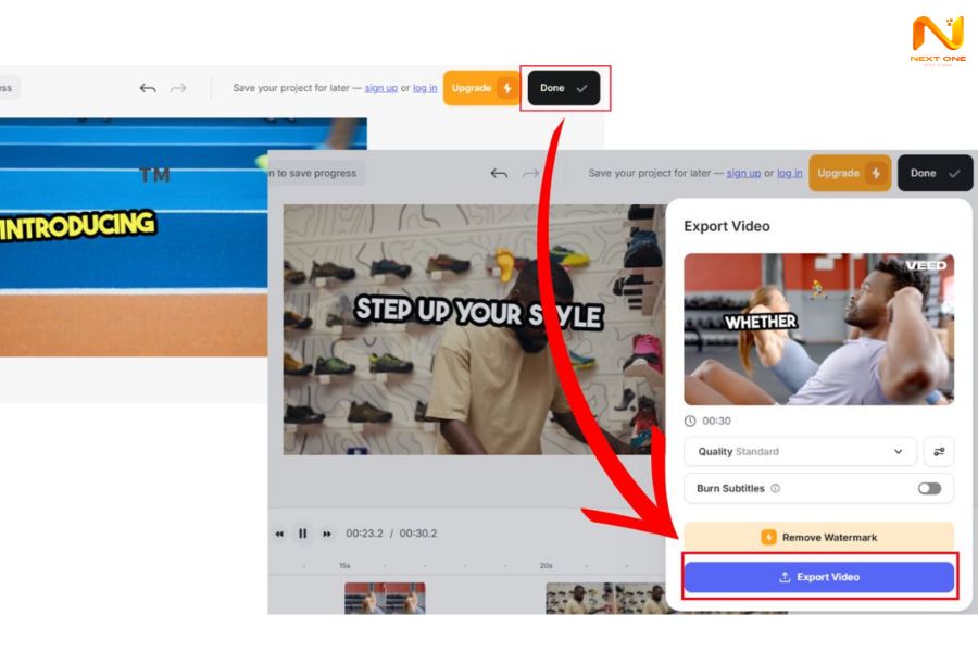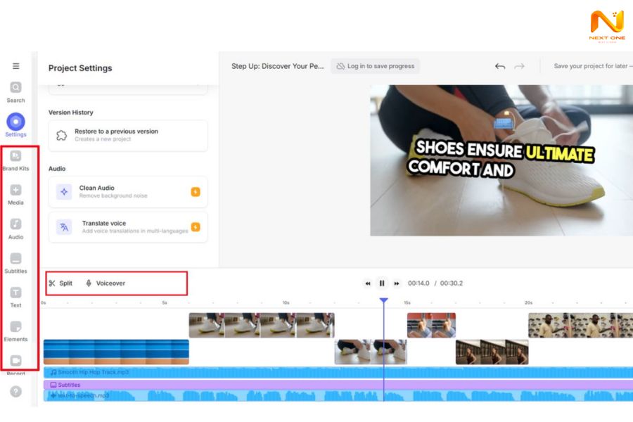 Bước 5: Sử dụng bộ công cụ chỉnh sửa của VEED (thêm phụ đề, đổi font, thay màu, thêm logo).