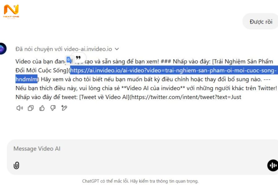 Bước 4: Nhấn vào liên kết mà ChatGPT cung cấp để xem video nháp.