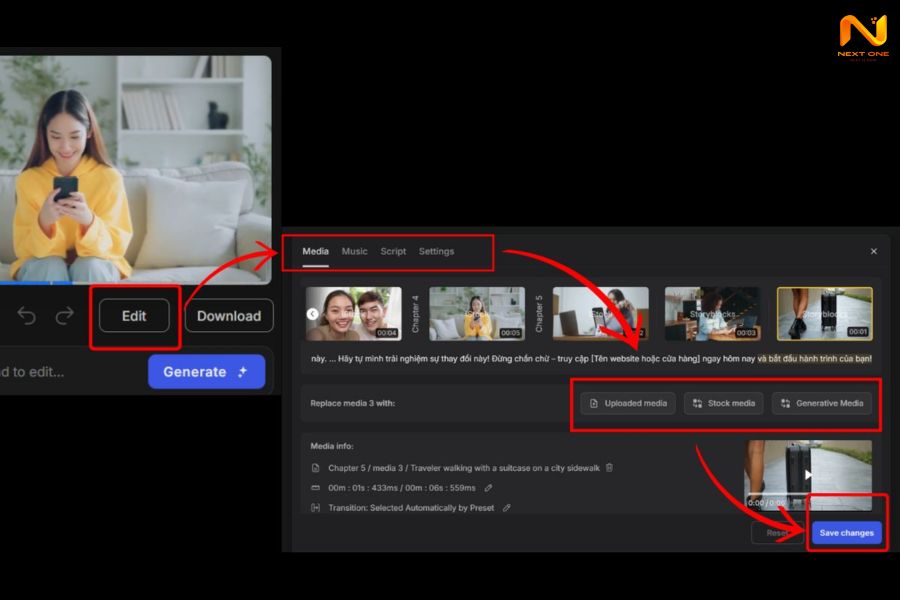 Bước 5: Nếu muốn chỉnh sửa (thay ảnh, video nền, nhạc), nhấn Edit, chỉnh sửa và Save Changes.