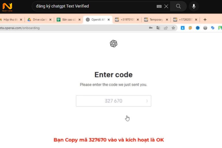 Lấy mã OTP từ Textverified và nhập vào ChatGPT để hoàn tất đăng ký